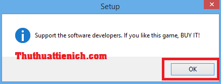 Bước 3: Chạy file Setup.exe để cài đặt game. Một cửa sổ thông báo như hình dưới hiện lên. Bạn nhấn nút OK để tiếp tục.