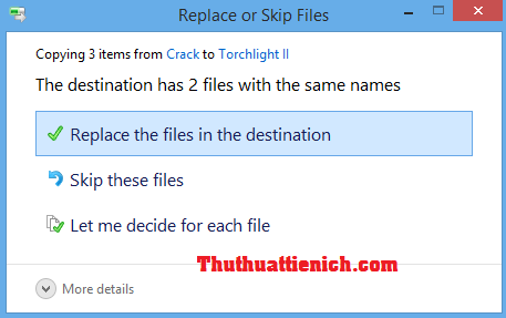 Nếu có thông báo hỏi ghi đè hiện lên các bạn chọn Yes hoặc Replace nhé.