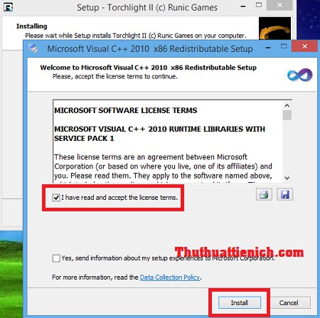 Bước 9: Khi cài đặt game bạn được yêu cầu cài đặt thêm phần mềm C++, bạn tích vào ô i have read and accept the license terms và nhấn nút Install.